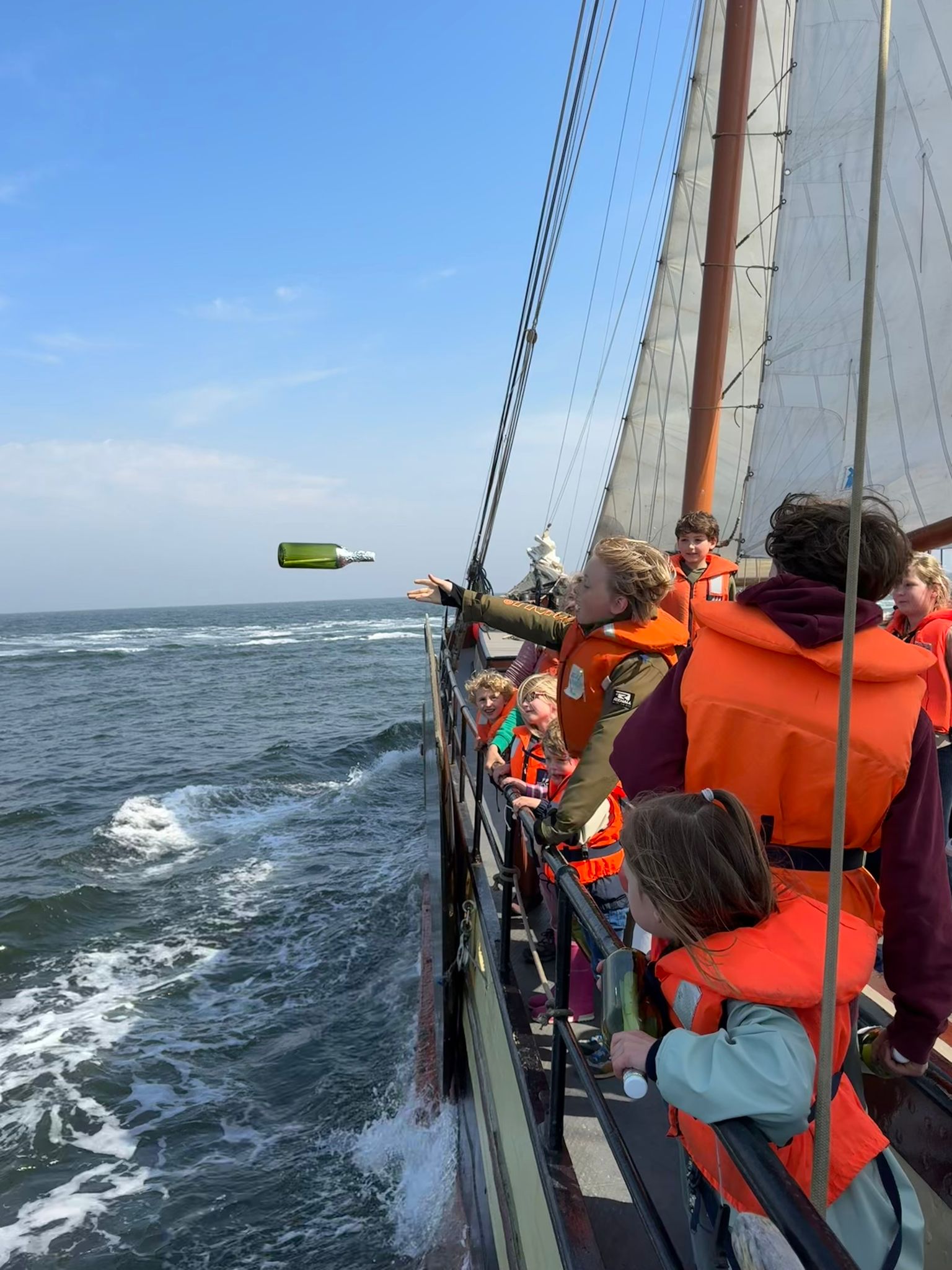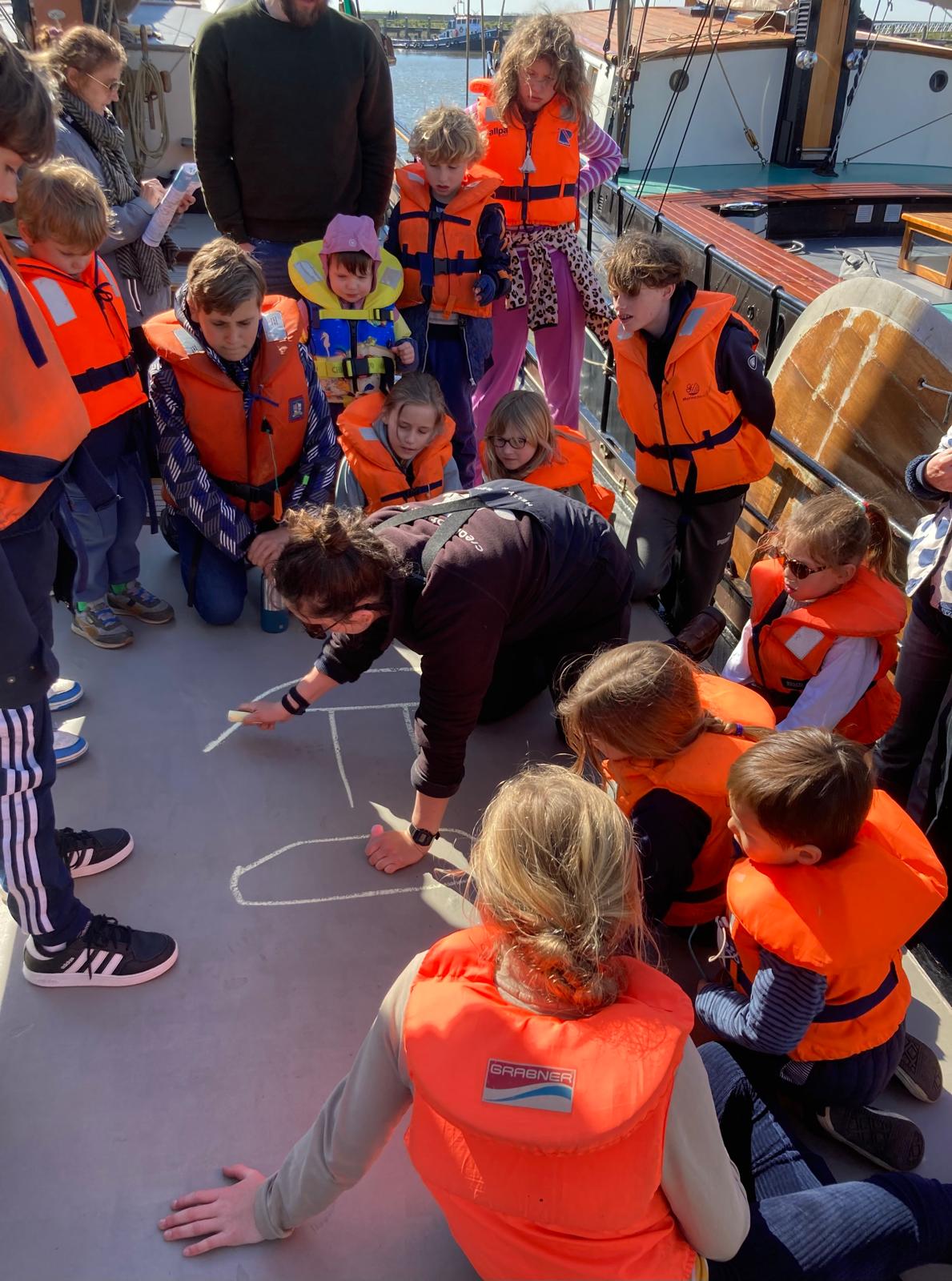 Voor iedereen is er een reddingsvest aan boord. Voor de kinderen geldt dat ze een reddingsvest dragen zodra we buitengaats zijn. Er is voor ieder kind een passend zwemvest aan boord.