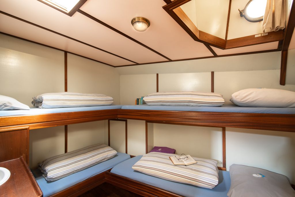 Naast de comfortabele hutten vindt u onderdeks een zeer ruime salon en dito kombuis met 6 pits kachel (fornuis) en vaatwasser. Wat het sanitair betreft zijn er 3 douches en 3 toiletten.