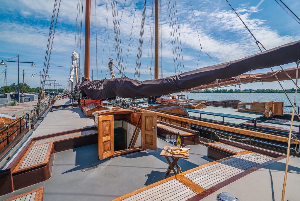 De Bree Sant valt op door haar sierlijke lijnen. Daarnaast is het schip een uitstekende zeiler. De gasten hebben bovendeks veel ruimte maar onderdeks is een zeer ruime salon.