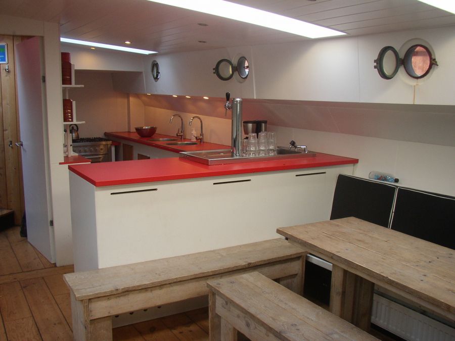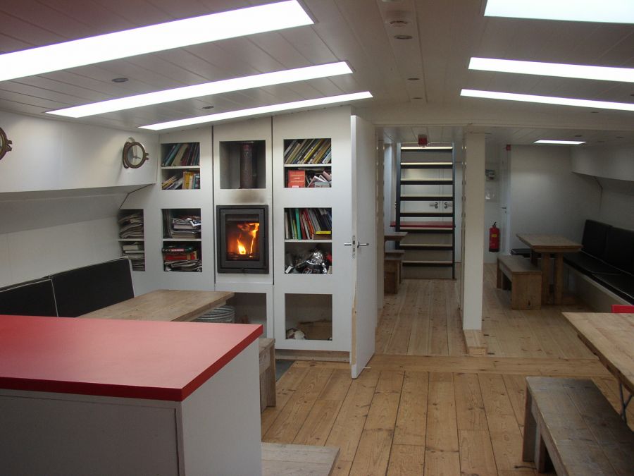 Monumentale klipper voorzien van een modern interieur.